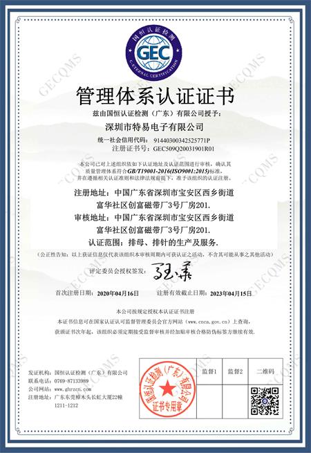 祝深圳市特易電子有限公司在創(chuàng)思維驗廠網輔導下順利通過ISO9001管理體系認證