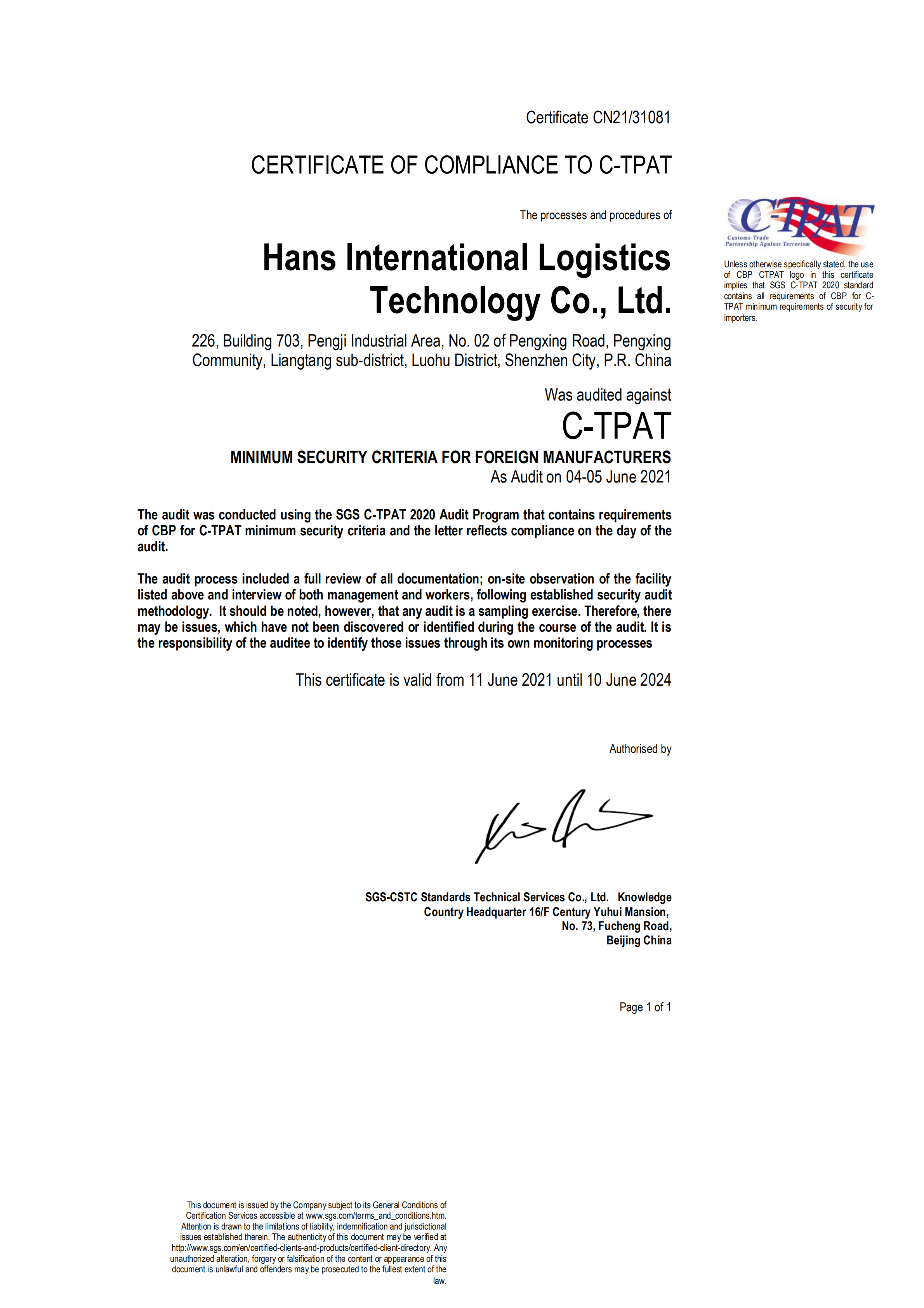 祝賀深圳市良泰物流有限公司、深圳欣欣達物流有限公司、順利通過ITS-GSV審核,同時也祝賀順欣達國際物流網(wǎng)絡(luò)技術(shù)(深圳)有限公司順利通過SGS-C-TPAT審核,為了保證客戶在規(guī)定的時間內(nèi)拿到合格證書,在疫情嚴重的鹽田區(qū)域創(chuàng)思維集團派遣多位資深反恐專家及老師同步進行輔導(dǎo),培訓,確保20天內(nèi)滿足客戶需求!