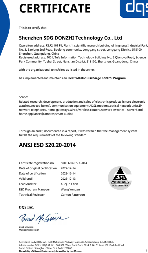 ESD認證用于電子、電氣、通訊業靜電防護體系實施規范與指南。可以看作是企業潛在客戶的特定要求,可使有志于成為知名跨國企業供應商的本地企業,早于競爭對手滿足顧客的要求,使自己立于主動位置。由知名公正的第三方認證機構實施現場的體系認證,可以公正、客觀地證明企業在靜電防護與控制體系建立與實施的適宜性、充分性和有效性;可以適當減少第二方認證所需的成本。