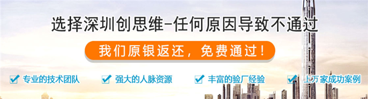創思維具有強大審核機構關系網,能夠幫助工廠一次性順利通過BV、UL、ITS、SGS等各類公證行的審核;可以提前指定審核員,查詢突襲時間,提前公關及現場公關,所有項目都是通過后付款!真正做到工廠無后顧之憂100%一次性通過。