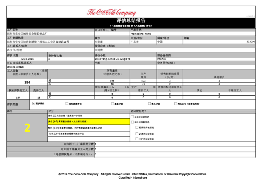 Coca-Cola可口可樂驗廠審核內容